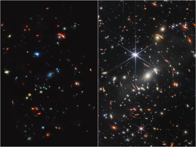 James Webb Uzay Teleskobu'nun çektiği ilk tam renkli fotoğraf. Dünyaya milyarlarca ışık yılı uzaklıkta olan galaksileri de içeren fotoğraf, evrenin bugüne kadar çekilmiş en derin, en detaylı fotoğrafı oldu.