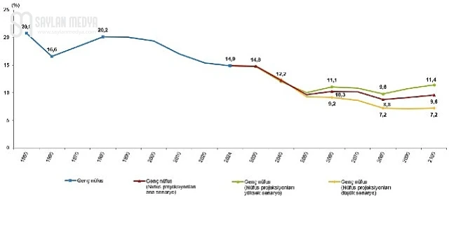 Nüfus projeksiyonlarının demografik göstergelerdeki mevcut yapının devam edeceğini varsayan ana senaryosuna göre genç nüfus oranının 2030 yılında %14,8, 2040 yılında %12,2, 2060 yılında %10,3, 2080 yılında %8,8 ve 2100 yılında %9,6 olacağı öngörüldü.