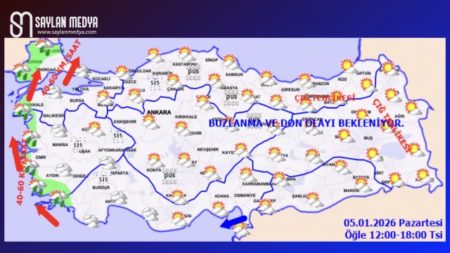 Rüzgarın; Marmara’nın batısı ve Kıyı Ege’de güney ve güneybatı yönlerden kuvvetli (40-60 km/saat); Hatay'ın güneyinde, kuzey ve doğu yönlerden kuvvetli ve kısa süreli fırtına (40-70 km/saat) şeklinde esmesi bekleniyor. Sabah ve gece saatlerinde iç ve doğu bölgelerde buzlanma ve don ile birlikte pus ve yer yer sis olayı bekleniyor. Doğu Karadeniz’in iç kesimlerinin yüksekleri ile Doğu Anadolu’nun doğusunda yüksek kar örtüsüne sahip eğimli kesimlerinde çığ tehlikesi bulunmaktadır.